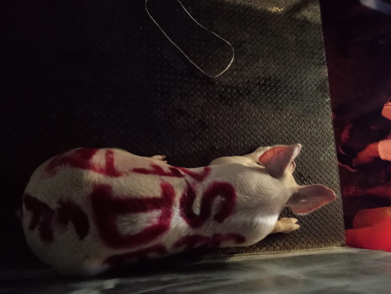 A las 10 de la noche de este jueves, un grupo de vecinos llevó un puerco para ser cocinado en plena carretera. Tiene insignias en el cuerpo del animal como parte de la manifestación de la población, que ha mostrado su hartazgo por la omisa atención que ha tenido de la CFE.