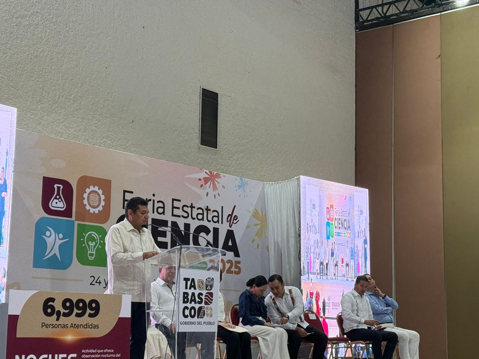 El gobernador de Tabasco, Javier May Rodríguez, inauguró la Feria Estatal de Ciencia 2025, donde llamó a fortalecer una sociedad del conocimiento y destacó que el estado vive un momento histórico en el que la ciencia se consolida como motor del bienestar de las familias tabasqueñas.