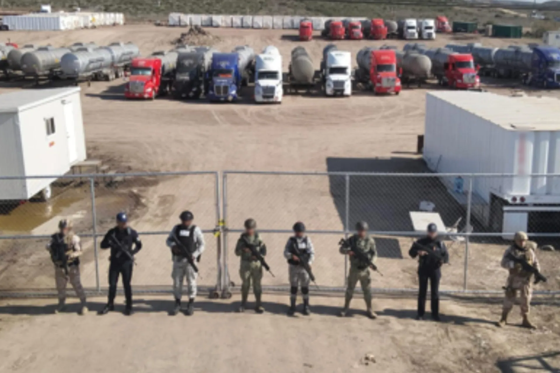 Con la información obtenida se realizó un despliegue coordinado y en el lugar se hallaron 100 cajas tipo contenedor con hidrocarburo de 72 mil 800 litros de capacidad cada una, 46 remolques tipo cisterna, cada uno con 31 mil litros de hidrocarburo, 19 tractocamiones de diferentes modelos, 12 motobombas de diferentes capacidades, dos remolques tipo oficina, una cisterna con 4 mil litros de urea, con un estimado de siete millones 944 mil litros de hidrocarburo.