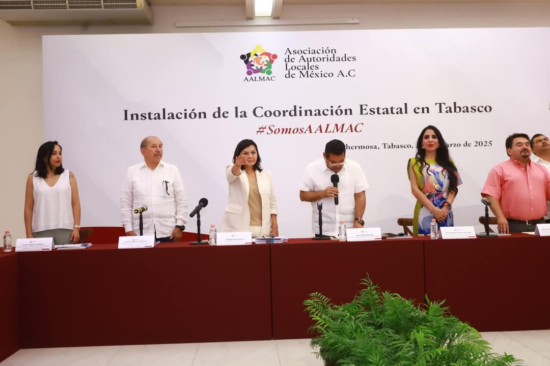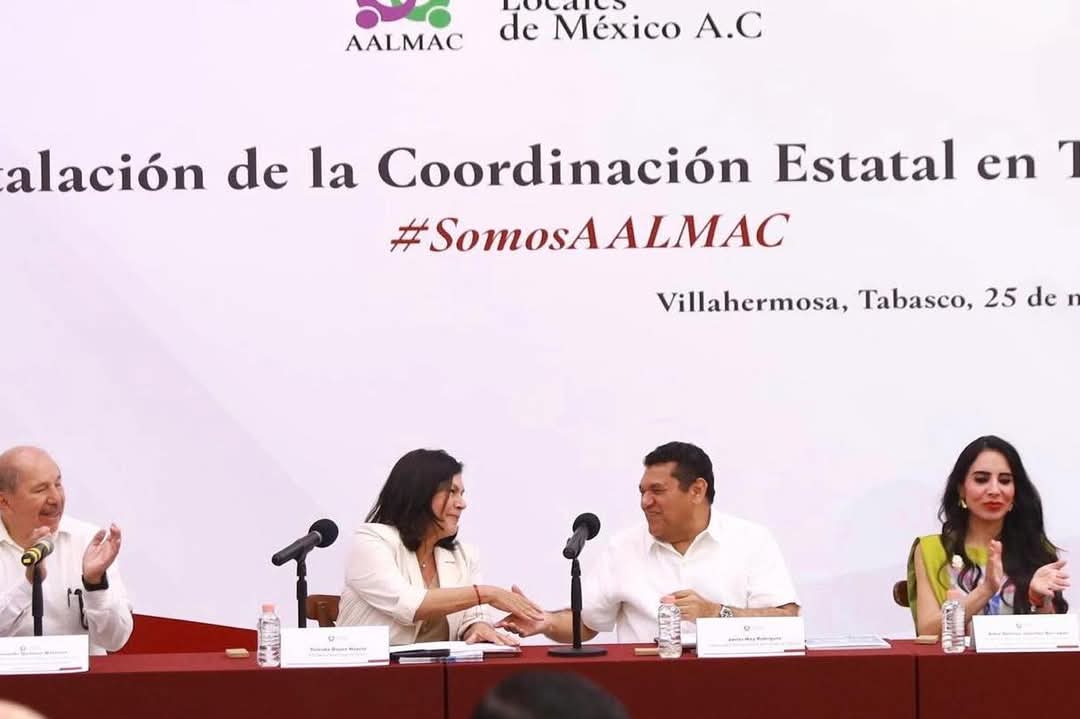 A fin de consolidar aún más la estructura del sistema federalista y municipalista, impulsando el intercambio de experiencias y las buenas prácticas de gobierno, se instaló la Coordinación Estatal de la Asociación de Autoridades Locales de México (AALMAC) en Tabasco, que desde este martes preside la alcaldesa de Centro, Yolanda Osuna Huerta. Además, en este evento, el gobernador Javier May Rodríguez, tomó protesta a las y los presidentes municipales como integrantes de la mesa directiva de este organismo.