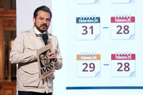Destaca el incremento en la participación femenina en el mercado laboral, con 9 millones de mujeres afiliadas al IMSS, representando el 40% del empleo total. Asimismo, el salario base de cotización se incrementó a $619.6 pesos diarios, un aumento del 7.5% en el último año.