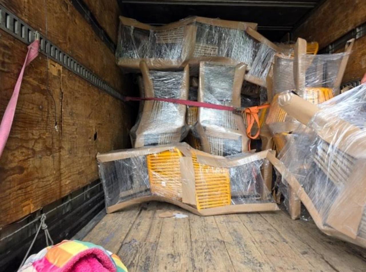 De inmediato, la FGR desplegó un operativo y al revisar el vehículo, que portaba placas del Estado de México, los agentes descubrieron que debajo de unos muebles de madera se escondían 72 cajas de cartón envueltas en plástico, las cuales contenían bolsas con aproximadamente una tonelada 173 kilogramos de marihuana.