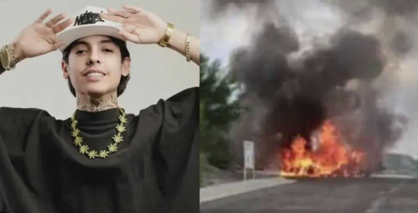 Natanael Cano sufrió un incidente mientras viajaba cuando su camioneta presentó una falla mecánica y comenzó a sacar humo antes de incendiarse, de acuerdo con información del equipo del cantante.