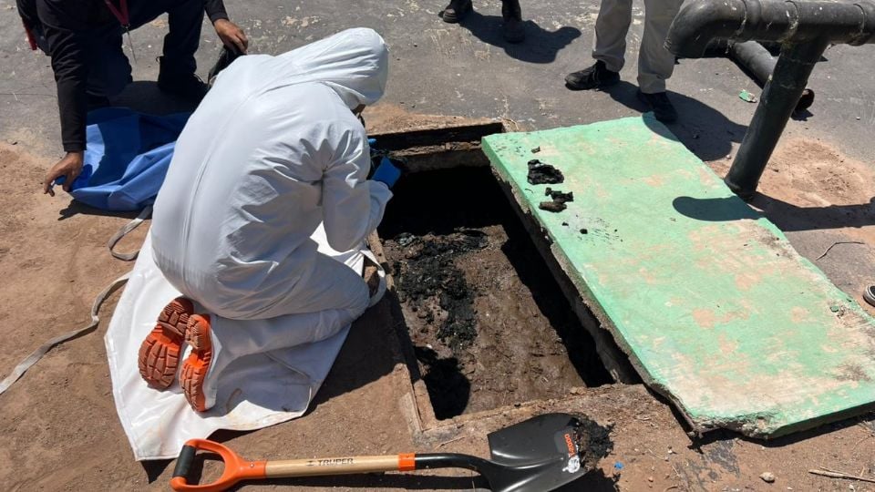 Al ingresar retiraron las tapaderas de cemento y metal, y se observaron restos humanos en estado de descomposición, restos óseos y ropa.