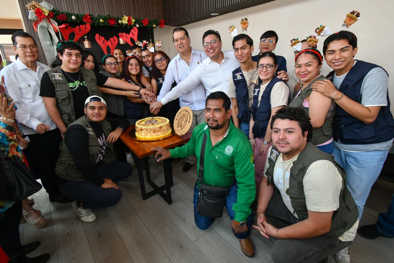 Con una partida de pastel y la exposición pictórica de AngieBu, la Universidad Juárez Autónoma de Tabasco, celebró el segundo aniversario de la apertura de la Casa Universitaria Cacao y Chocolate, evento encabezado por el rector Guillermo Narváez Osorio, acompañado por los expositores e invitados.