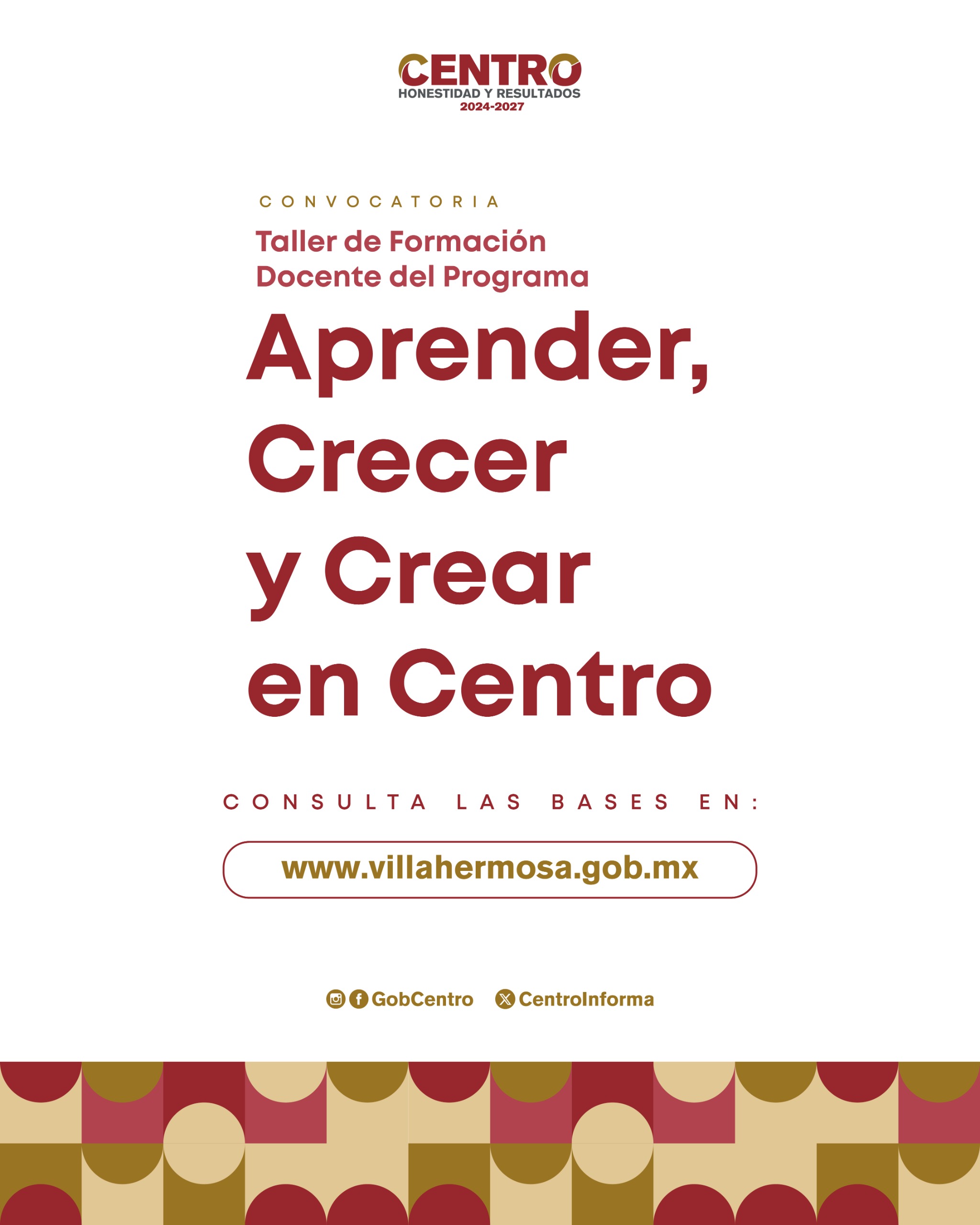 El Ayuntamiento de Centro, por medio de la Dirección de Educación, Cultura y Recreación (DECUR), convoca a docentes de secundarias públicas en las modalidades general, técnica, telesecundaria y comunitaria a participar en el Taller de Formación Docente del Programa “Aprender, Crecer y Crear en Centro”, con el objetivo de fortalecer las prácticas de enseñanza mediante una metodología lúdico-educativa.