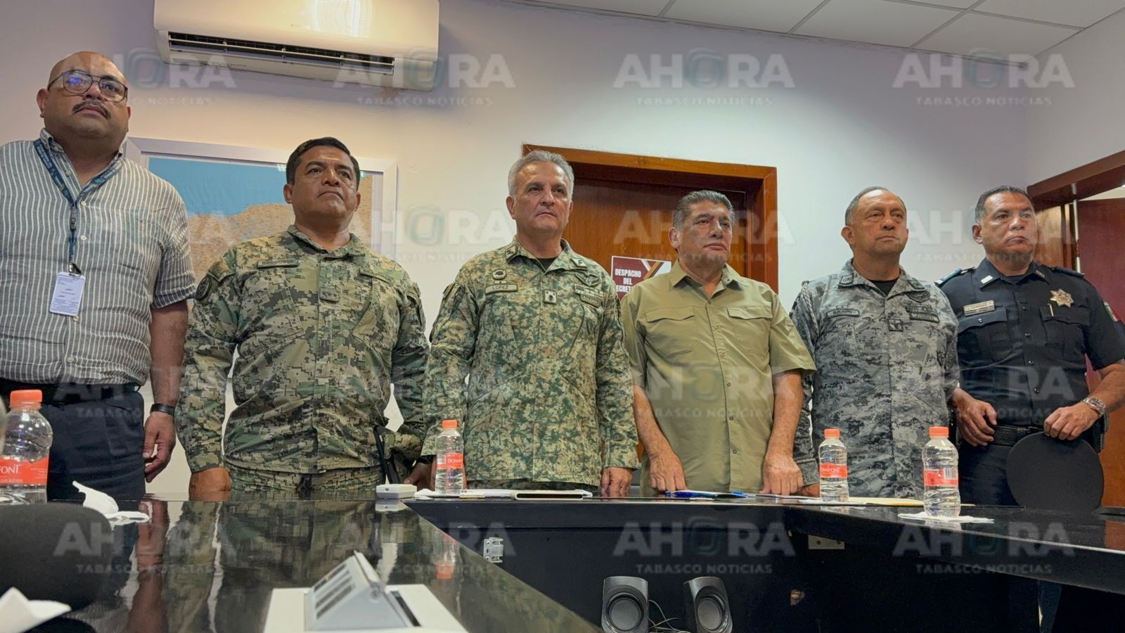 En rueda de prensa, los titulares de la 30 Zona Militar, Miguel Ángel López Martínez; de la Guardia Nacional, Manuel Bravo Alonso; de la Fiscalía General del Estado (FGE), Tonatiuh Vázquez Landero y de la Secretaría de Seguridad Pública y Protección Ciudadana (SSPC), Serafín Tadeo Lazcano dieron a conocer que desde la localización de cuatro cuerpos calcinados en el poblado “Palo Mulato”, se intensificaron los operativos en la zona.