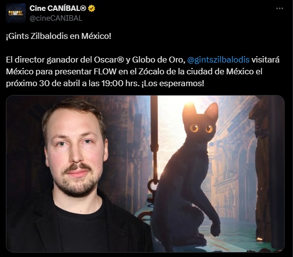 Zilbalodis estará en nuestro país para la presentación de Flow en el Zócalo de la ciudad de México el próximo 30 de abril a las 19:00 horas.