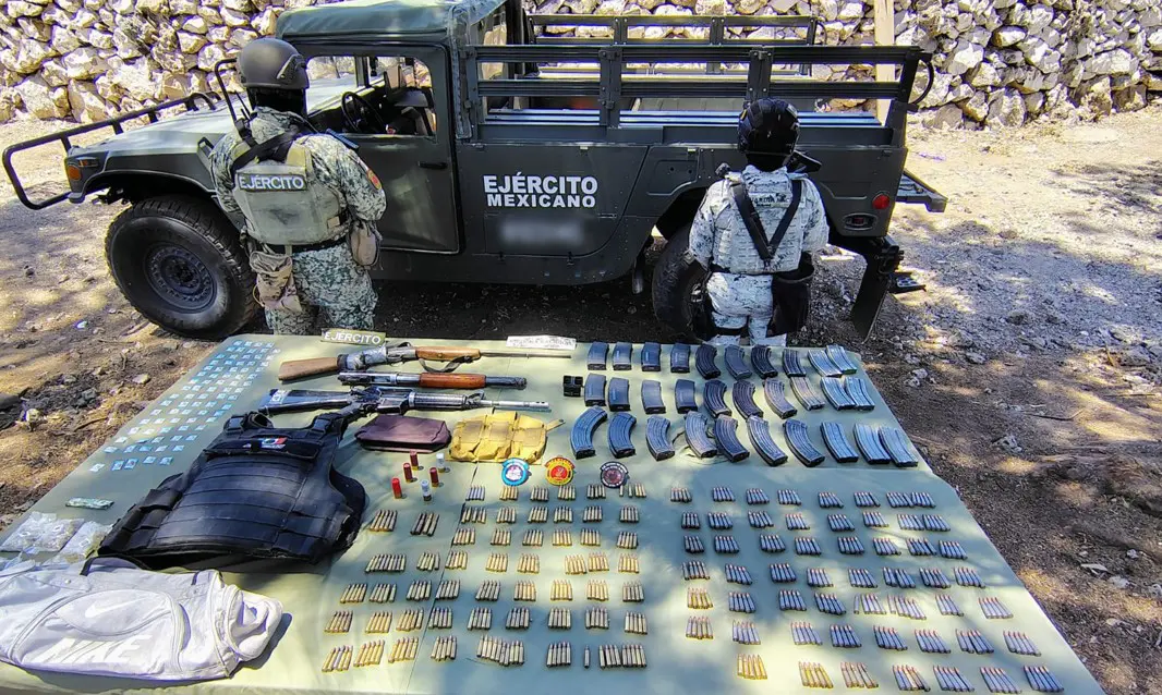 -En Juan R. Escudero, elementos del Ejército Mexicano, GN y Policía Estatal aseguraron dos armas largas, 10 cargadores, 90 cartuchos, dos chalecos tácticos, una motocicleta y un vehículo.