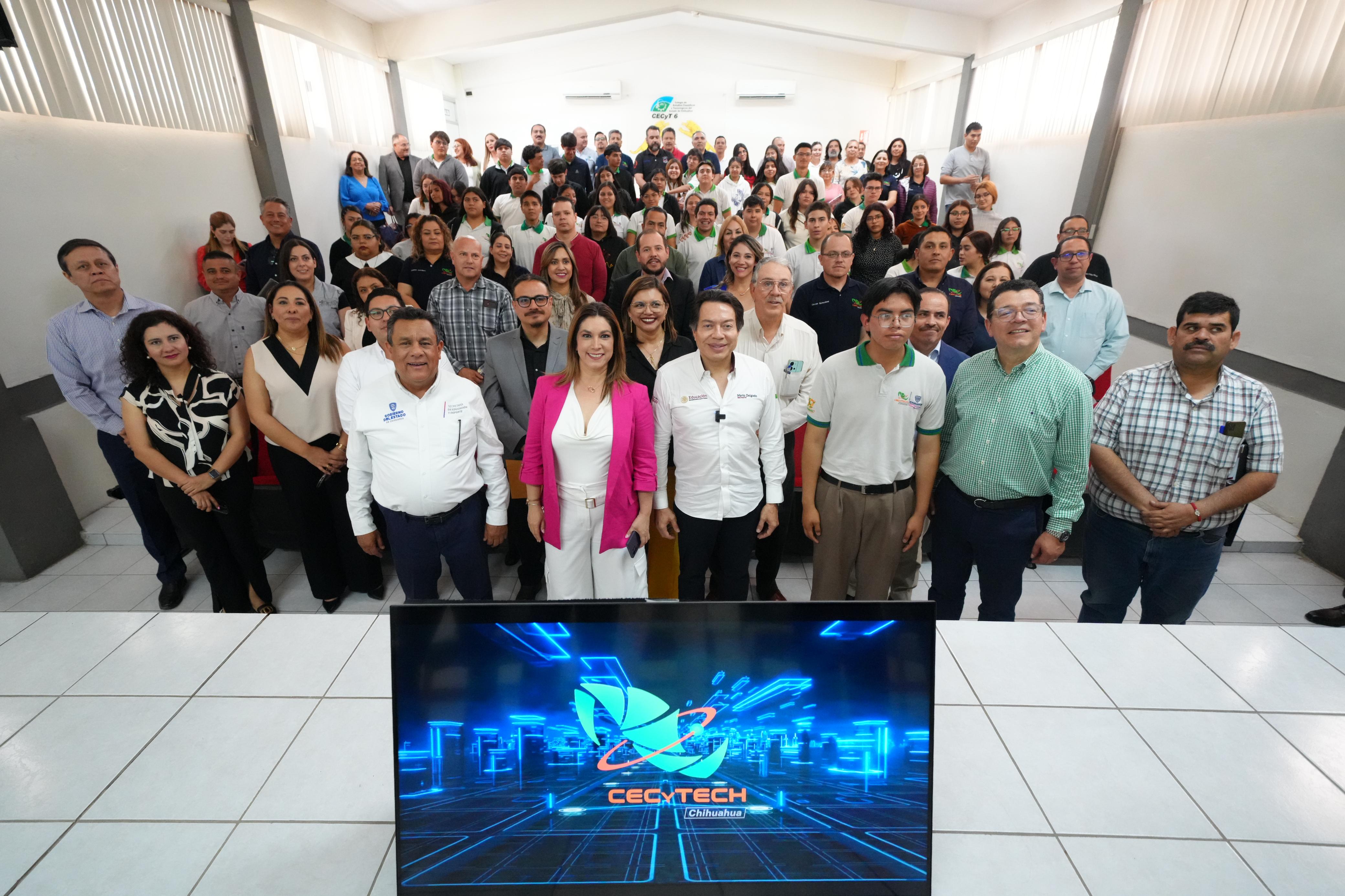 Más adelante, visitó el Colegio de Estudios Científicos y Tecnológicos del Estado de Chihuahua (CECyTECH) Plantel 6, donde habló sobre la transformación de la Educación Media Superior para responder a las demandas del mercado laboral actual. Comprobó que el plantel se ha actualizado y anunció que, a partir del próximo ciclo escolar, las y los estudiantes podrán cursar nuevas carreras como Inteligencia Artificial, Robótica y Automatización, Ciberseguridad y Comercio Internacional. “Son carreras nuevas, vinculadas con lo que ocurre hoy en la economía, y contribuirán a que las y los jóvenes permanezcan y concluyan su bachillerato”, afirmó.