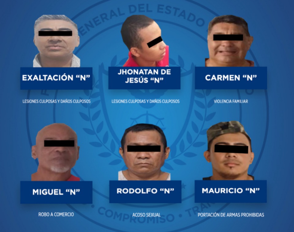 De acuerdo con la dependencia, las aprehensiones se realizaron en los municipios de Centro, Comalcalco, Cunduacán, Huimanguillo y Jalapa, por delitos como homicidio, secuestro mediante amenazas, robo de vehículo con violencia, daños culposos, incumplimiento de obligaciones de asistencia familiar y abigeato agravado, este último cometido mediante el aprovechamiento de una relación laboral.