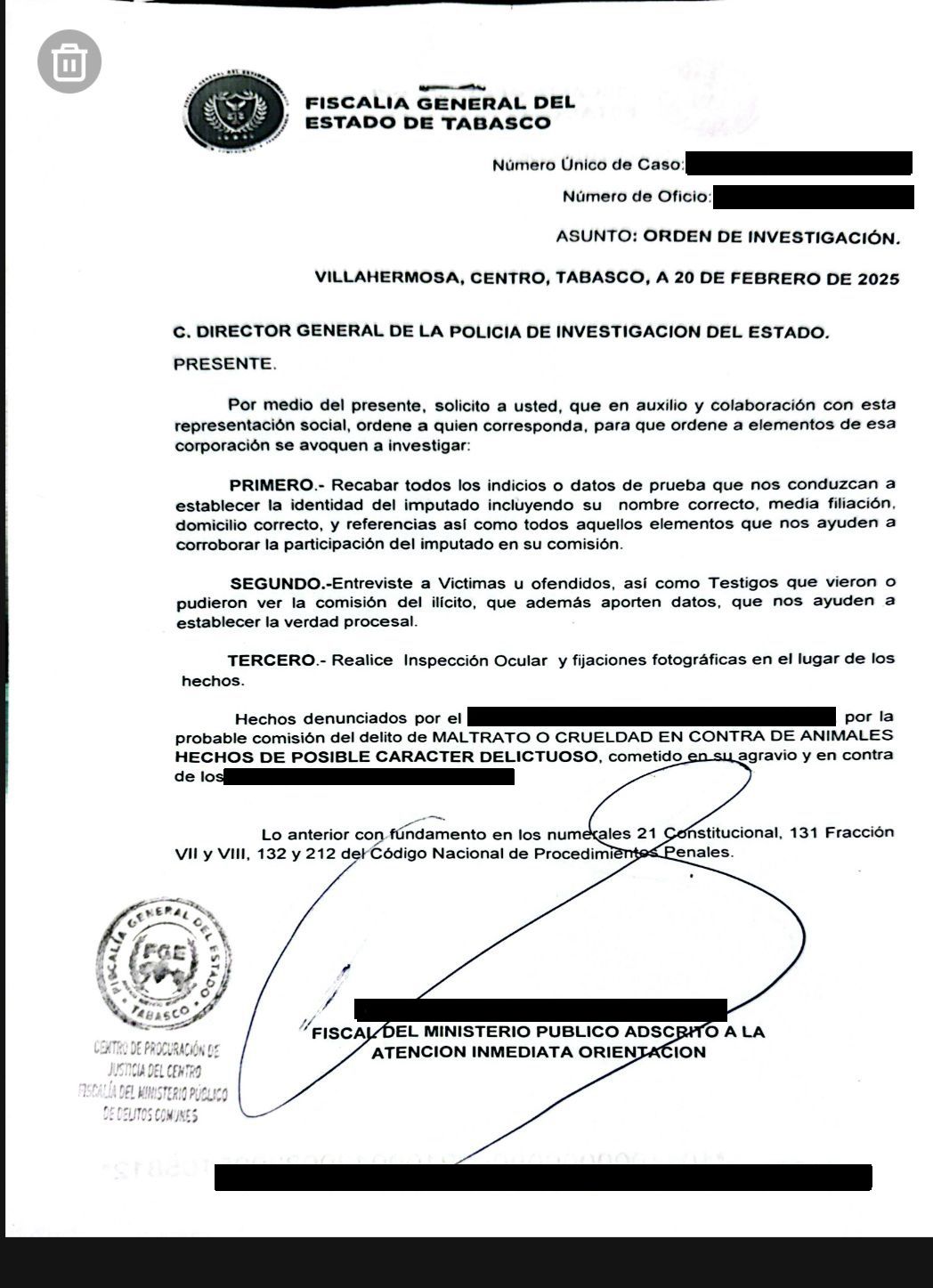 La Fiscalía General del Estado (FGE) de Tabasco ordenó investigar un caso de crueldad animal contra una gatita en un fraccionamiento de la ranchería Río Viejo, en el municipio de Centro.