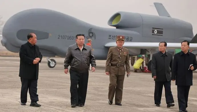 Fotos publicadas por la Agencia Central de Noticias de Corea (KCNA), propiedad del Estado, mostraron a Kim observando lo que parecía ser un dron de reconocimiento de gran tamaño que se asemeja al avión de advertencia y control de naves en vuelo E-7 Wedgetail de Boeing. Otras imágenes mostraron drones que explotaban y se estrellaban contra vehículos militares utilizados como blancos.