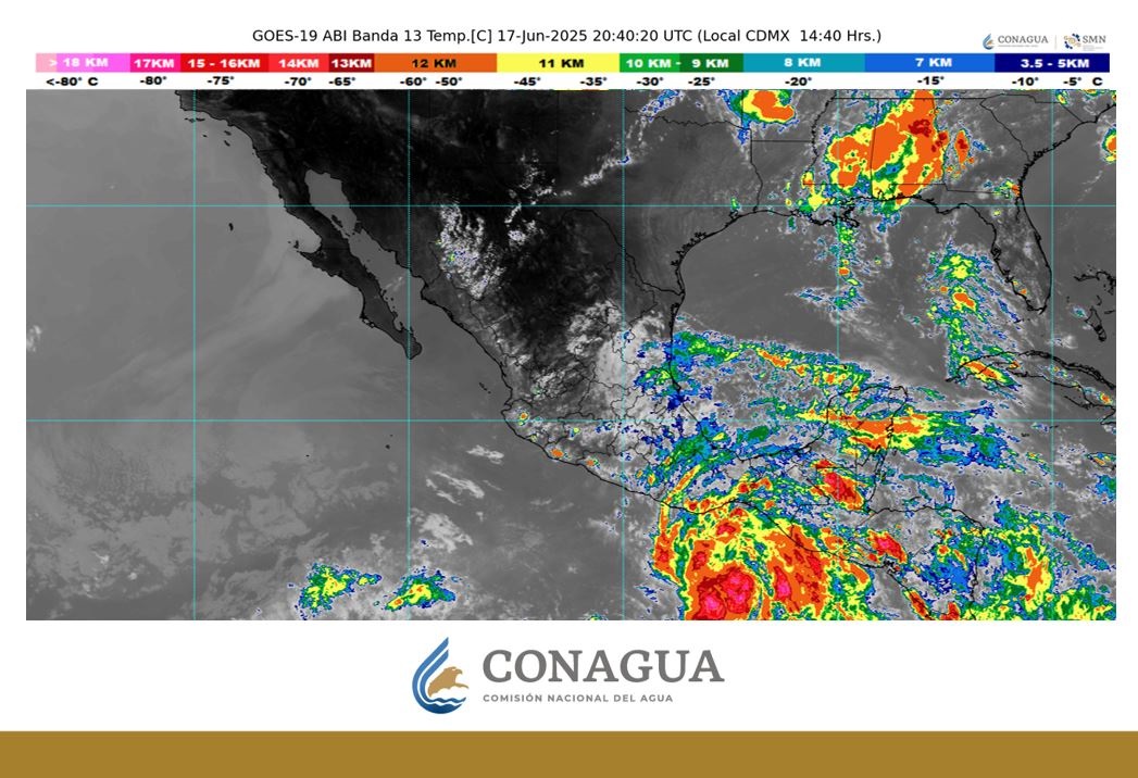 Durante las próximas horas, la circulación y los desprendimientos nubosos de la tormenta tropical Erick ocasionarán lluvias puntuales intensas (de 75 a 150 milímetros [mm]) en Guerrero, Oaxaca, Chiapas y el sur de Veracruz, así como viento de 30 a 50 kilómetros por hora (km/h) con rachas de 60 a 80 km/h en costas de Oaxaca y Chiapas, y de 10 a 20 km/h con rachas de 30 a 50 km/h en el litoral de Guerrero. Asimismo, se prevé oleaje de 2.5 a 3.5 metros (m) de altura en costas de Oaxaca y Chiapas, y de 1.5 a 2.5 m de altura en el litoral de Guerrero.