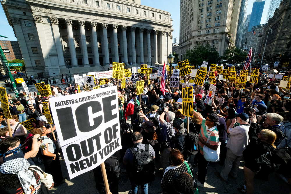 «ICE fuera de NYC» era el lema de esta manifestación contraria a la presencia del Servicio de Control de Inmigración y Aduanas, brazo ejecutor de las recientes redadas, detenciones y deportaciones de migrantes indocumentados en todo Estados Unidos.