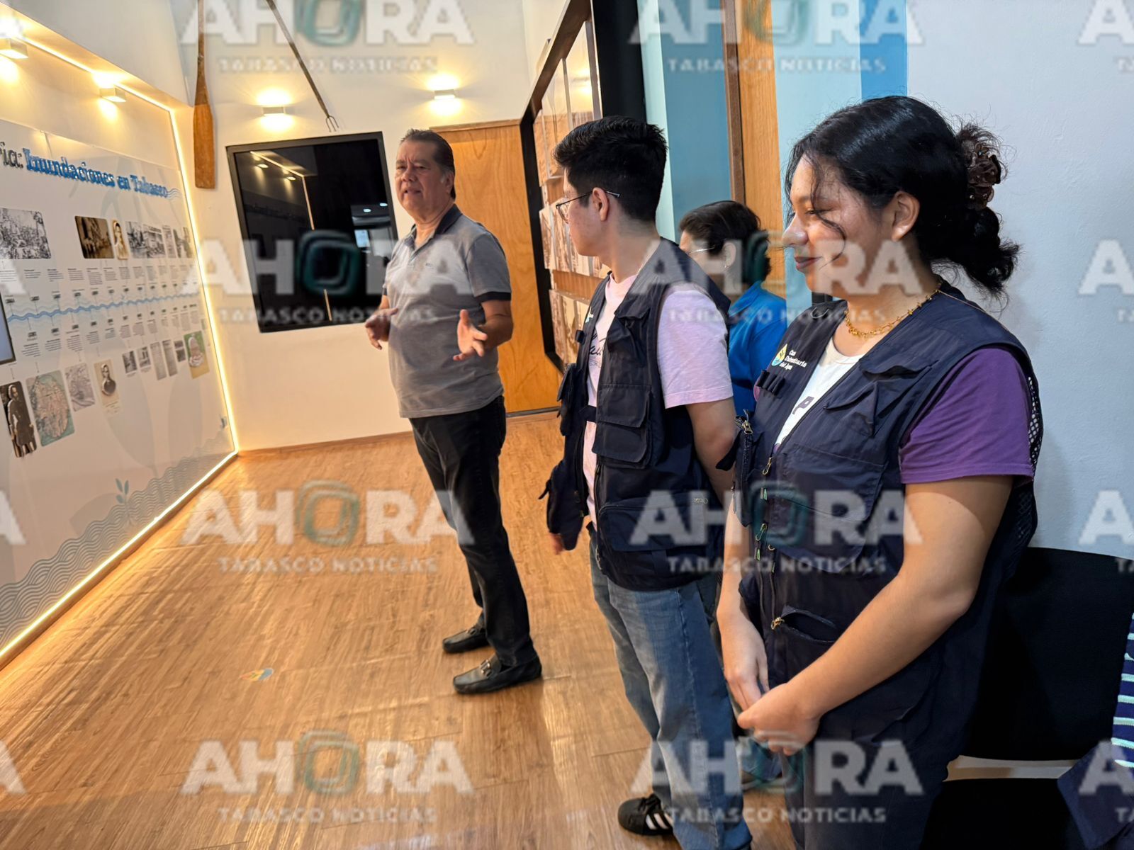 Durante la visita, los asistentes pudieron observar un mapa iluminado de las cuencas hidrometeorológicas de Tabasco, además de juegos interactivos, una esfera holográfica, el Laboratorio Azul, una esfera LED que muestra las capas de la Tierra y módulos dedicados a la prevención de riesgos por inundaciones.