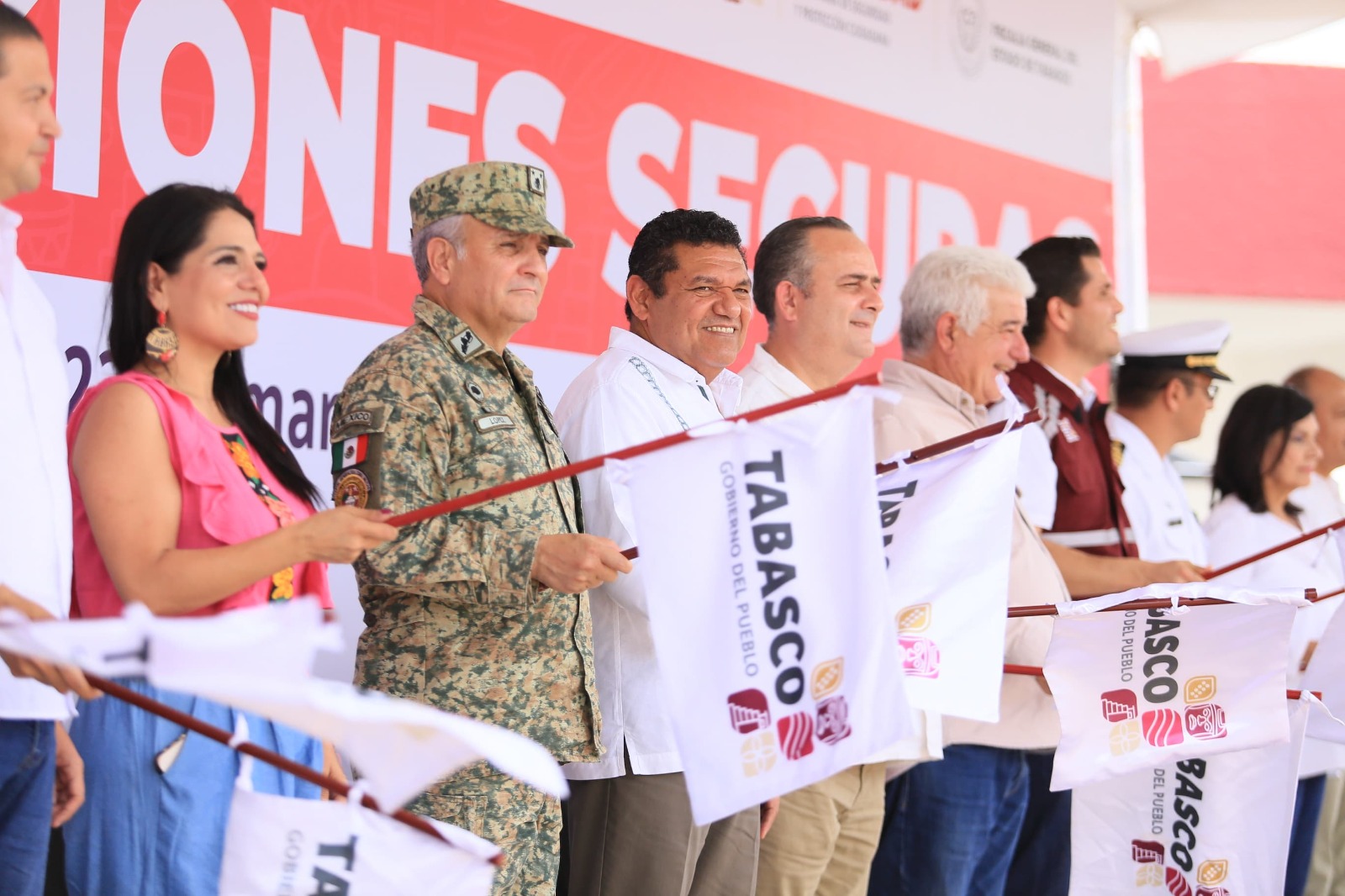 Desde el estacionamiento de la nave 3 del parque Dora María, el mandatario estatal, junto al coronel de la Guardia Nacional, Ignacio Murillo Rodríguez, representantes de la 30 zona Militar, de la Marina y de la alcaldesa de Centro, Yolanda Ozuna, dieron el banderazo de salida a las unidades que participarán en este operativo.