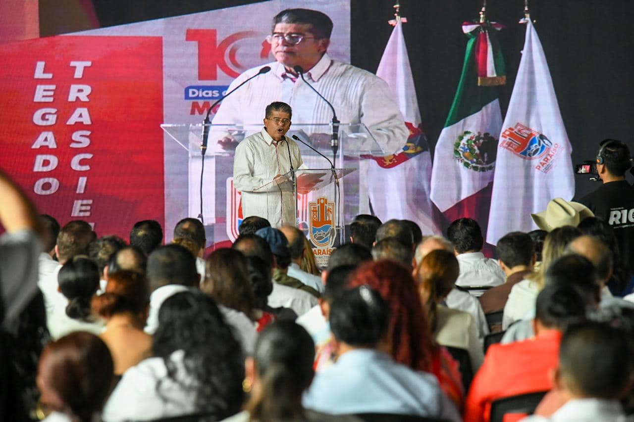 Con el corazón pletórico de gratitud y la convicción de que junto a su pueblo está construyendo el Paraíso del Futuro, el presidente municipal de Paraíso, Alfonso Baca Sevilla, presentó un informe de sus primeros 100 Días de Gobierno en Movimiento.