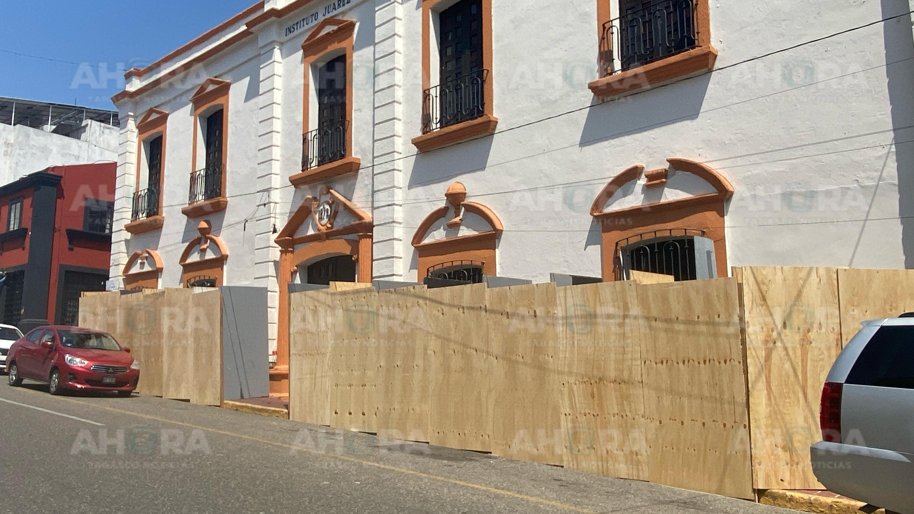 Uno de los primeros que ha tomado la decisión de resguardar el inmueble es el Instituto Juárez, uno de los edificios más antiguos de la zona; hicieron lo propio los encargados de la biblioteca de la UJAT, conformada en su fachada por cristales.