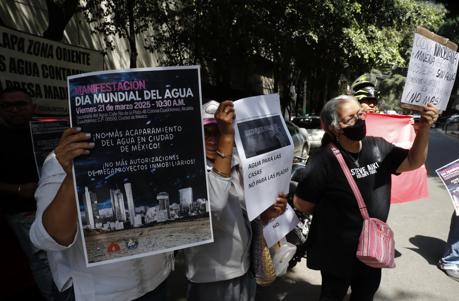 En el marco del Día Mundial del Agua, organizaciones civiles y activistas protestaron este viernes en Ciudad de México (CDMX) para alertar de una posible sequía y denunciar que los grandes proyectos inmobiliarios son parte del problema.