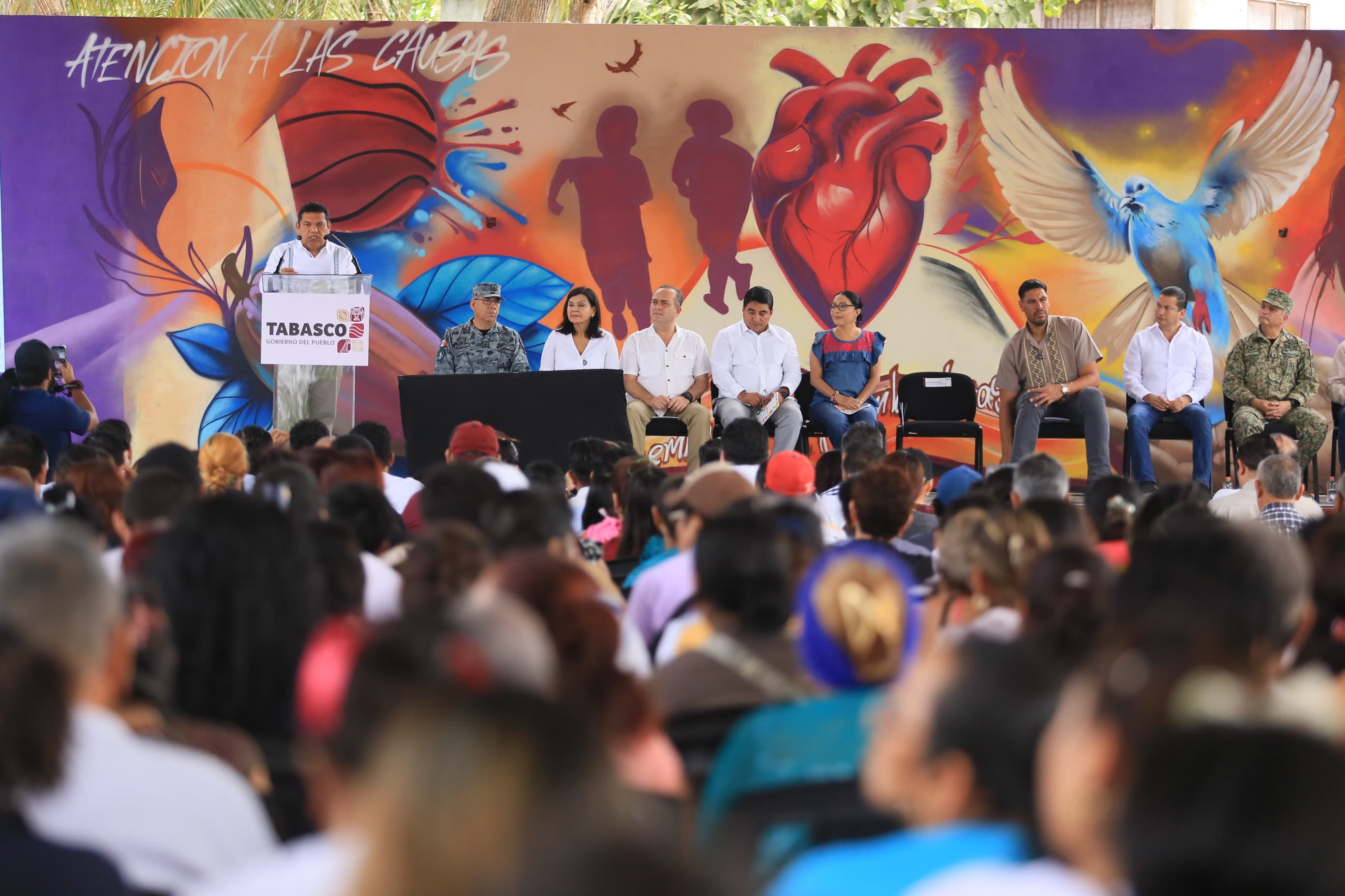 Al clausurar junto a la subsecretaria de Prevención de la Secretaría de Seguridad y Protección Ciudadana (SSPC) federal, Esthela Damián Peralta, la primera etapa de las Jornadas de Paz en la colonia Gaviotas Sur, del municipio de Centro, el mandatario estatal refrendó su compromiso de seguir atendiendo las causas de la inseguridad y trabajar de cerca con las comunidades para conocer y atender sus necesidades para recuperar la paz en el estado.