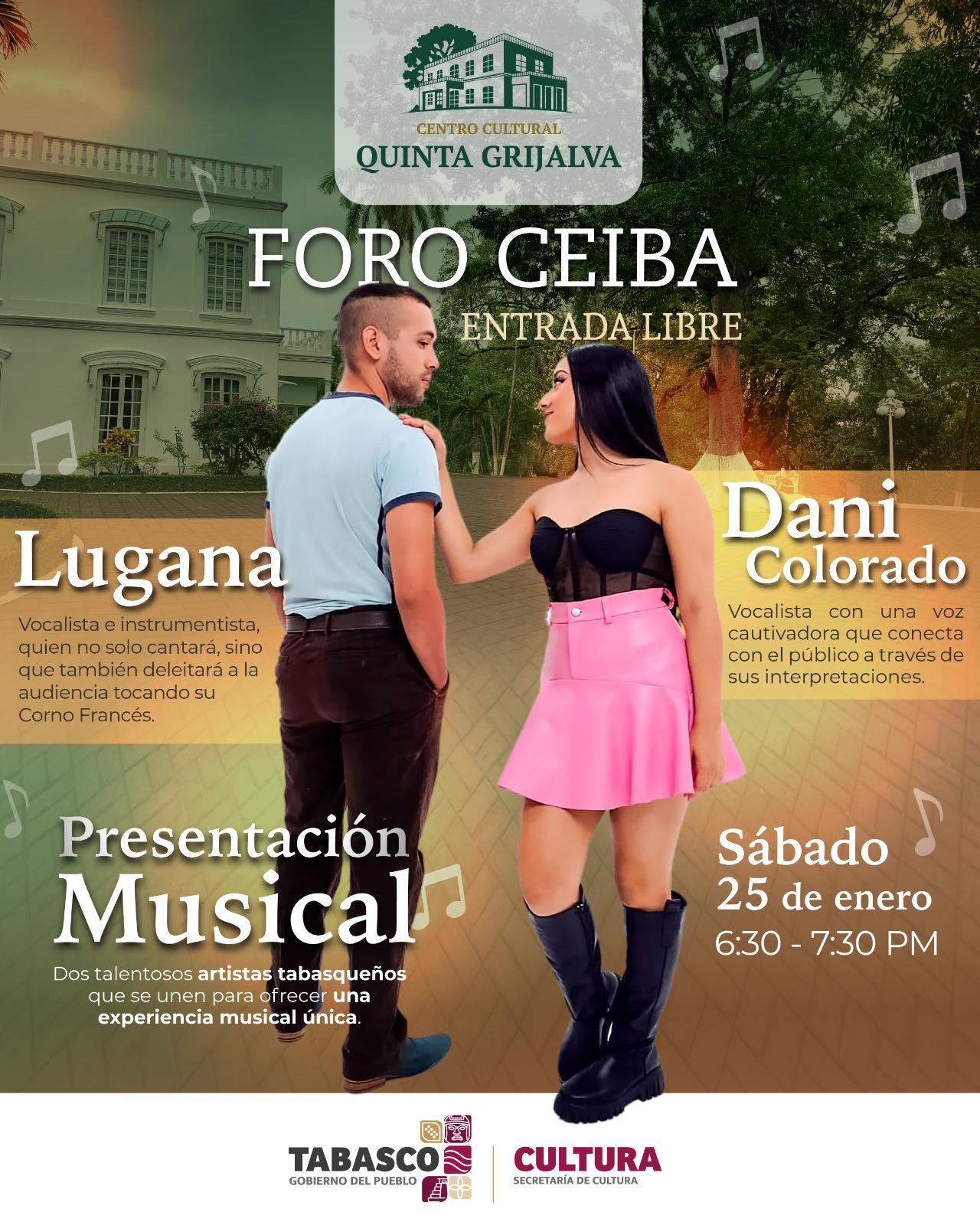En el Foro Ceiba del Centro Cultural, a las seis y media de la tarde, la cantante Dani Colorado, acompañada de Luana, ofrecerá un concierto que promete llenar de música este recinto. El domingo, en la calzada principal, se impartirá una clase muestra de salsa, desde las cinco hasta las siete de la tarde.
