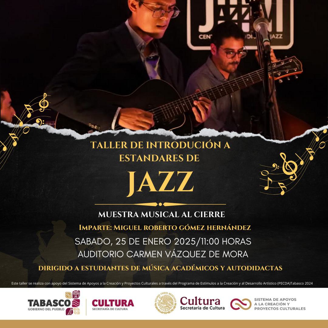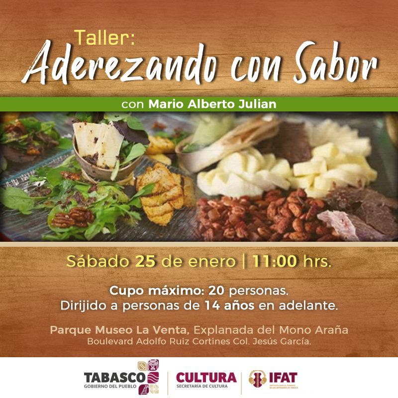 El sábado, en el Parque Museo La Venta, se llevará a cabo el taller “Aderezando con Sabor”, impartido por Mario Alberto Julián, con un cupo limitado para 20 personas. Por otro lado, en el Auditorio Carmen Vázquez de Mora de la Casa de Artes José Gorostiza, tendrá lugar el taller “Introducción a Estándares de Jazz”, que comenzará a las 11 de la mañana.