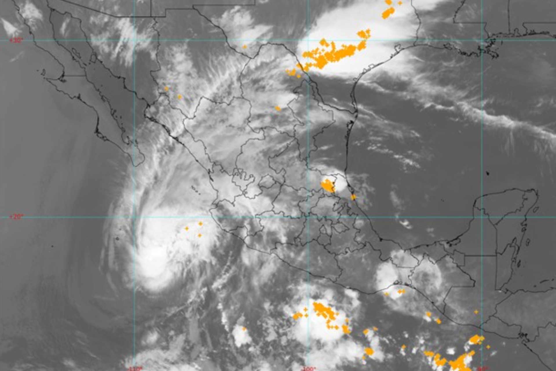 Una circulación ciclónica en niveles medios y altos de la atmósfera asociada con la corriente en chorro subtropical sobre el noroeste del país, en interacción con inestabilidad atmosférica, con un nuevo frente frío (fuera de temporada) que se extenderá sobre la frontera norte del país, y con un canal de baja presión sobre la Mesa del Norte, ocasionarán rachas fuertes de viento, así como lluvias fuertes a muy fuertes en el norte del territorio mexicano, además de lluvias puntuales intensas en Coahuila y Nuevo León.