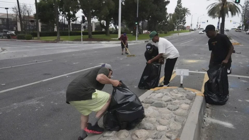 «Uno requiere del apoyo de la comunidad”: vecinos de Los Ángeles limpian tras disturbios