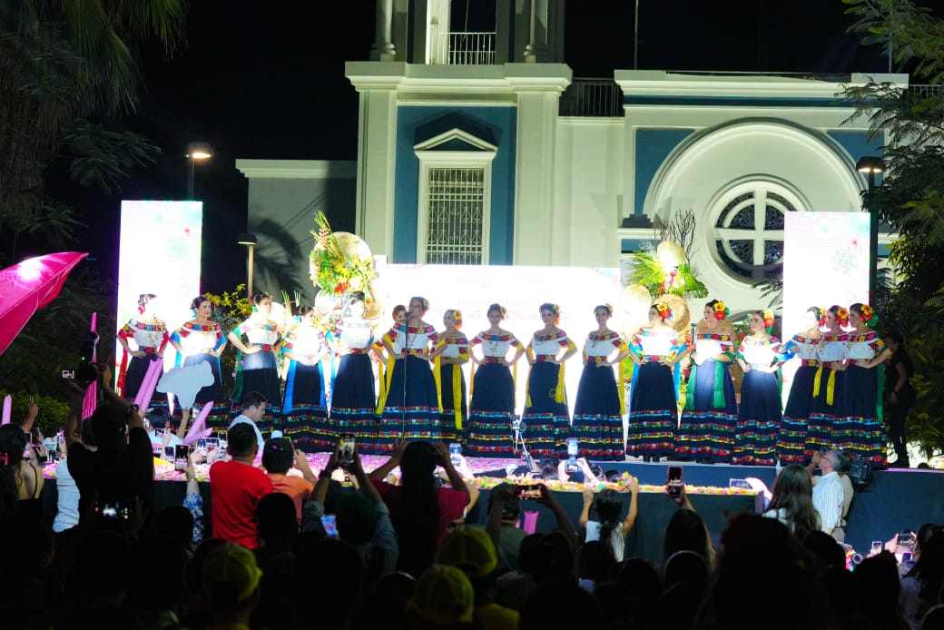 Posteriormente, todas caminaron hacia el escenario ubicado en el centro del parque –adornado por una pantalla gigante donde se proyectaron animaciones de los lugares icónicos de Comalcalco, como su iglesia y su Zona Arqueológica–, donde las recibió el cariño de este pueblito chiquito y bonito que es un primor.