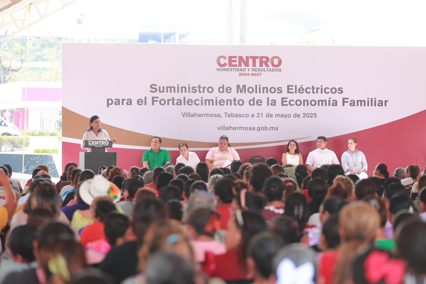 La presidenta municipal de Centro, Yolanda Osuna Huerta, entregó 500 molinos eléctricos como parte del programa “Suministro de molinos eléctricos para el fortalecimiento de la economía familiar”, beneficiando a habitantes de 241 comunidades y 34 colonias populares del municipio.